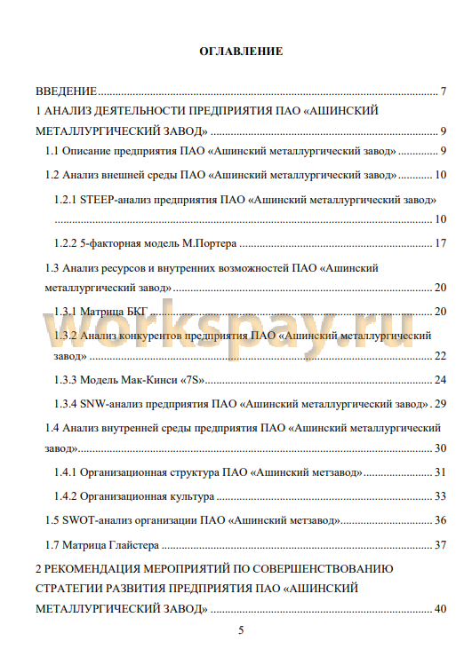 СТРАТЕГИИ РАЗВИТИЯ ПРЕДПРИЯТИЯ ПАО «АШИНСКИЙ МЕТАЛЛУРГИЧЕСКИЙ ЗАВОД» 40