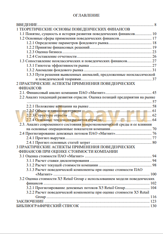 - разработать рекомендации по использованию поведенческой компоненты при оценке стоимости компании.
