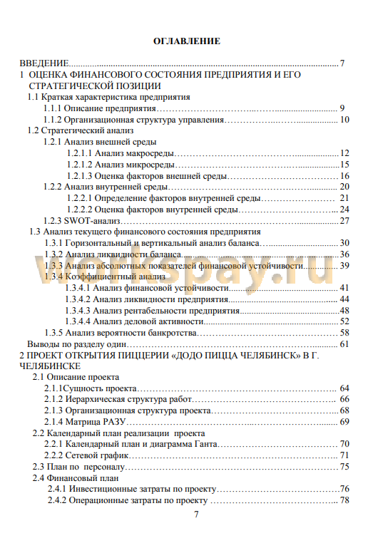 Тема: Проект улучшения финансового состояния компании ООО «Додо пицца Челябинск» путем открытия нового ресторана в г. Челябинск
