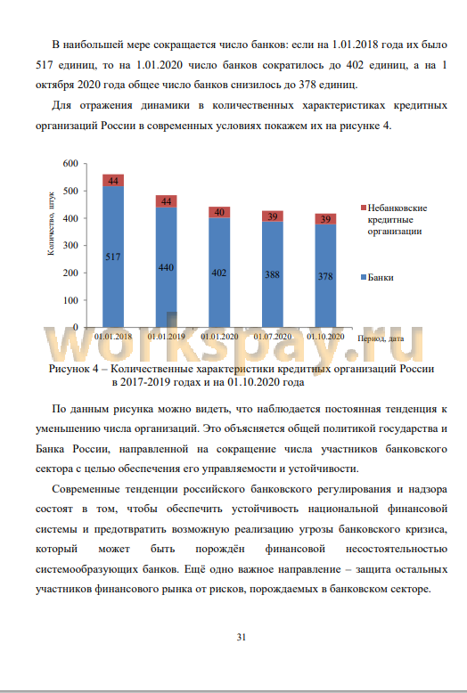 Было установлено, что российский банковский сектор на современном этапе его развития характеризуется постоянным сокращением числа участников, происходит рост концентрации активов (пассивов) у крупнейших участников рынка. В 2017-2019 годах происходил рост активов (пассивов) банковского сектора и объёмов кредитов экономике, рост финансового результата и результативности, но в 2020 году стала формироваться обратная тенденция под воздействием ряда негативных факторов.