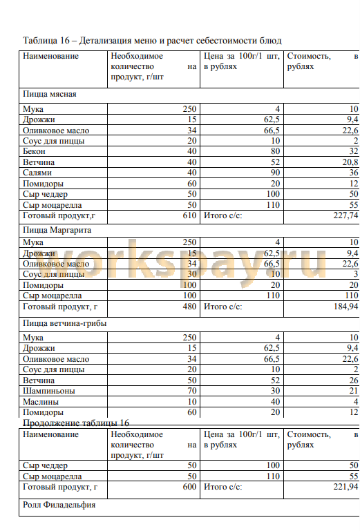 2.3.4 Меню сервиса и себестоимость продукции 47