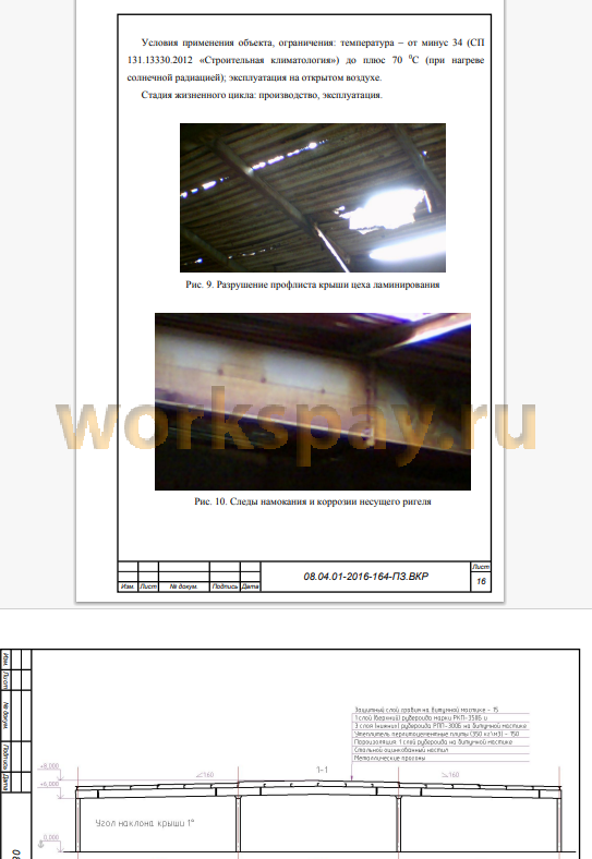 Объектом исследования является существующая кровля цеха ламинирования, для которой, в следствие её разрушения требуется провести реконструкцию. Предметом исследования являются конструкционные, технологические и эксплуатационные параметры кровли цеха.