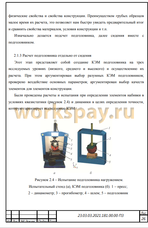 2.1.4 Расчет кресла на автомобиль, оснащенное активным подголовником..29