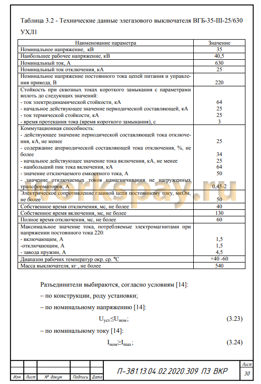 3 ВЫБОР СИЛОВОЙ АППАРАТУРЫ ОРУ 35 КВ ПС 110/35/6