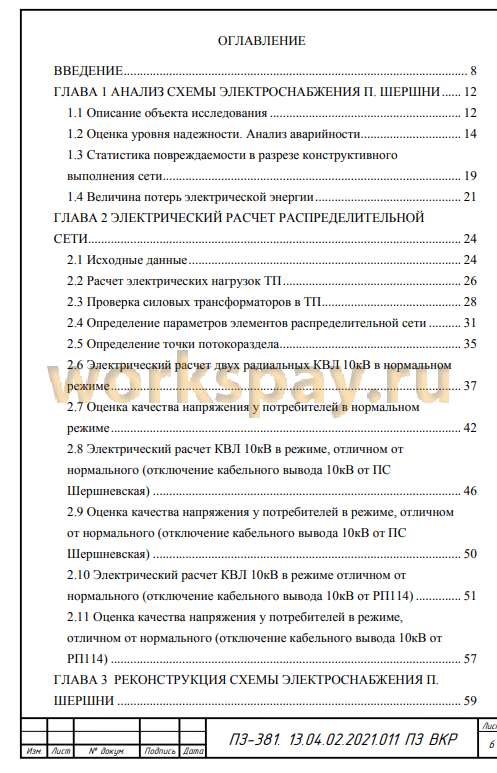 ГЛАВА 1 АНАЛИЗ СХЕМЫ ЭЛЕКТРОСНАБЖЕНИЯ П. ШЕРШНИ 12