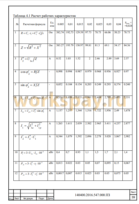 4.9 Расчет рабочих характеристик 37