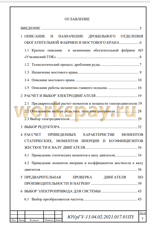 В работе произведены необходимые расчеты, выбран электродвигатель, редуктор, преобразователь частоты. Проведена проверка по нагреву и производительности двигателя, а также приведены характеристики моментов и коэффициентов жесткости к валу. Разработана система автоматизации.
