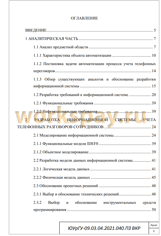 Первая глава состоит из анализа предметной области, постановки задачи автоматизации процесса учета телефонных переговоров, а так же обзор существующих аналогов систем.