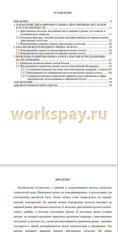 Целью выпускной квалификационной работы является исследование состояния и перспектив развития мирового рынка золота и анализ его влияния на мировую экономику России, а также разработка рекомендаций по укреплению позиции России на мировом рынке.
