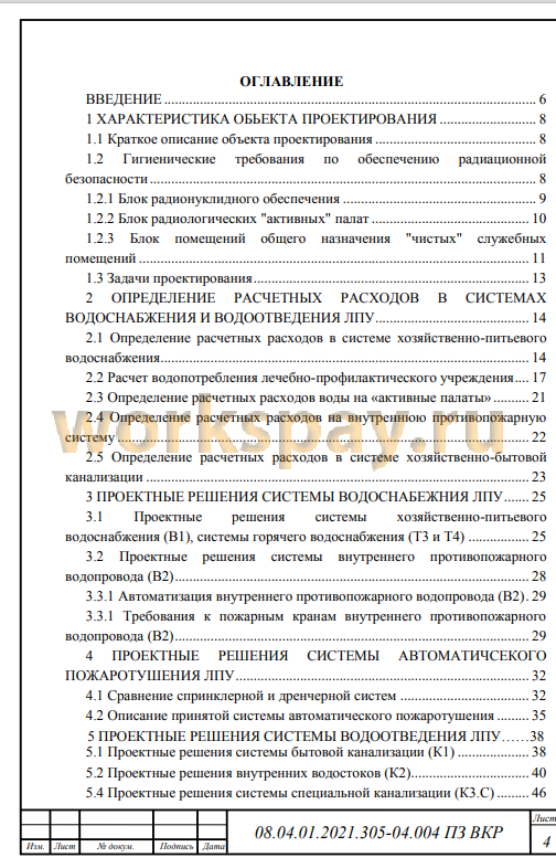 Практическая значимость работы заключается в подробном описании каждой проектируемой системы водоснабжения и водоотведения, использовании программного продукта «Умная вода» для определения расчетных расходов воды в проектируемых системах водоснабжения и водоотведения; в проектировании и подробном описании работы вакуумной канализации, предназначенной для удаления жидких радиоактивных отходов от отделения радионуклидной терапии.