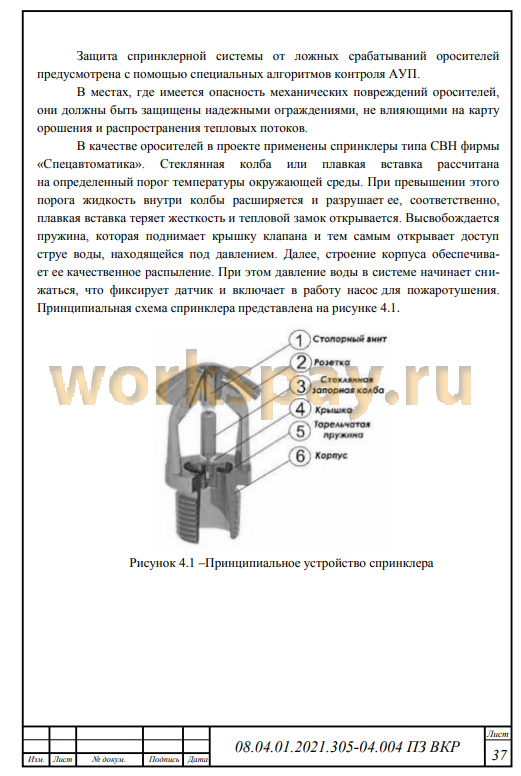4.2 Описание принятой системы автоматического пожаротушения 35