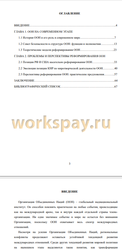 Во введении обоснована актуальность темы исследования, его цель и задачи. Первая глава работы посвящена изучению положения ООН на современном этапе. В этом аспекте рассмотрена история ООН и его роль в современном мире, Совет безопасности в нынешнем виде: функции и полномочия и теоретические модели реформирования ООН.