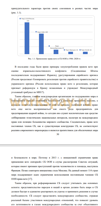 Целью выпускной квалификационной работы является исследование нынешнего состояния и перспектив реформирования Организации Объединенных Наций.