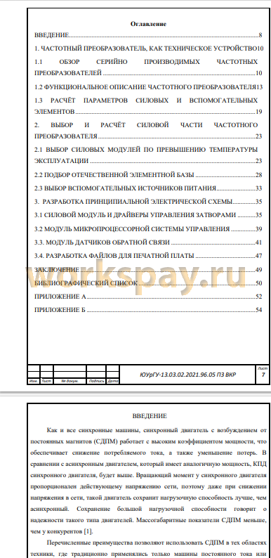 Целью данной работы является разработка электронной аппаратуры тяговым электроприводом на основе синхронного двигателя с возбуждения от постоянных магнитов.