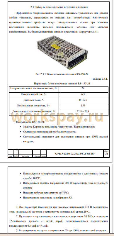2.3 ВЫБОР ВСПОМОГАТЕЛЬНЫХ ИСТОЧНИКОВ ПИТАНИЯ 33