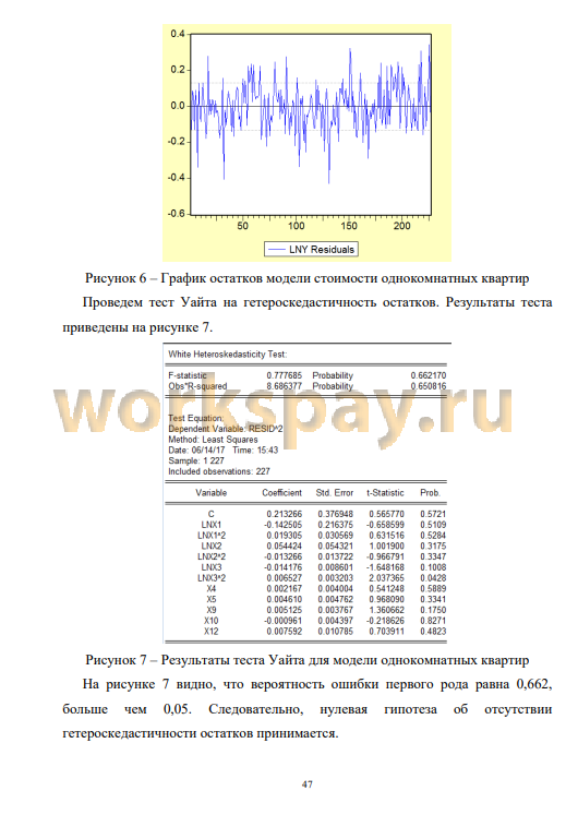 3.3.1 Регрессионный анализ однокомнатных квартир 43