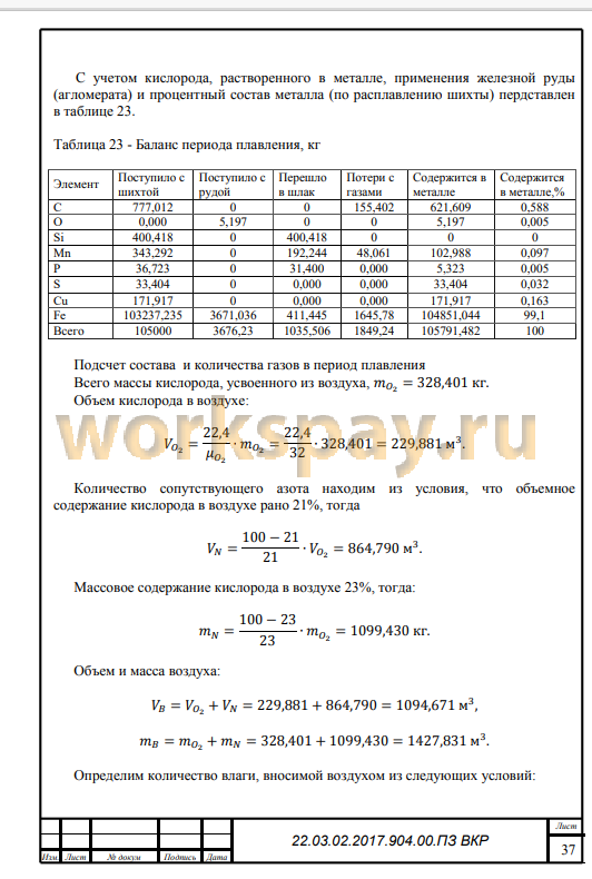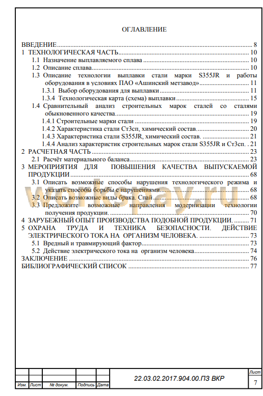 В работе рассмотрены особенности стали S355JR. Произведён расчёт материального баланса плавки, невязка суммарного материального баланса составила 0,079%