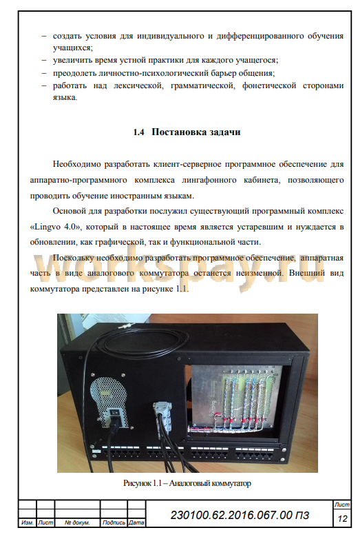 Всё вышеперечисленное делает актуальным разработку аппаратно-программного комплекса лингафонного кабинета, так как высокий уровень владения иностранным языком достигается не только теоретическим багажом, но и его уровнем практических навыков и умений.