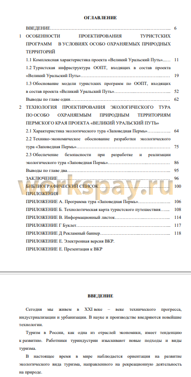 Предмет выпускной квалификационной работы - технология проектирования комплексного экологического тура «Заповедная Пермь» в рамках реализации проекта «Великий Уральский Путь».