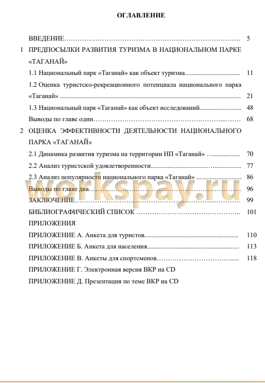 - двух глав, представляющих детализированное изложение теоретических положений проблем исследования и путей ее решения посредством составления модели развития туризма, основанного на результатах оценки туристского и рекреационного потенциала и анкетирования посетителей национального парка «Таганай».