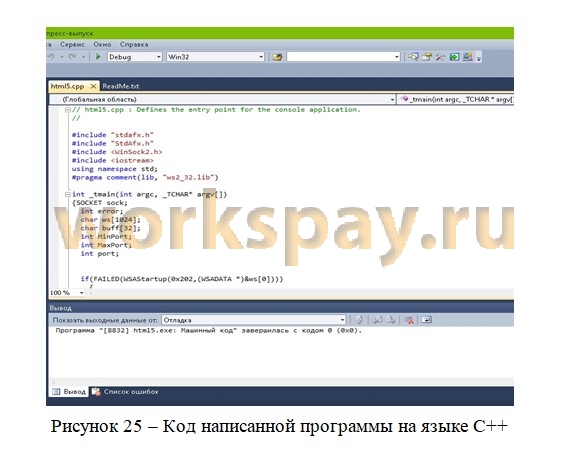 - была изучена литература, относящаяся к среде разработки Visual Studio на языке С++, составлен алгоритм работы средства защиты и разработана консольная программа по выявлению «опасных» участков кода и их обезвреживанию, помимо этого был разработан сканер TCP-портов.