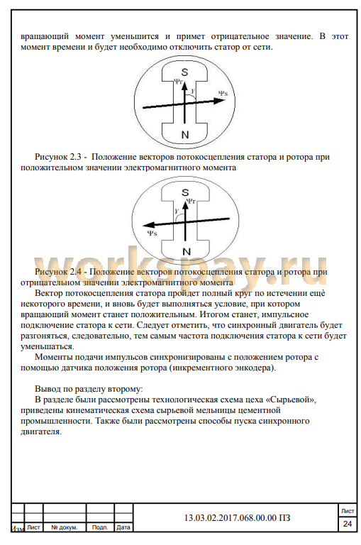 Способом устранения данных недостатков станет использование векторно-импульсного способа пуска синхронного двигателя. Для этих целей необходимо использовать устройство плавного пуска, тиристорный преобразователь постоянного тока, инкрементальный энкодер.
