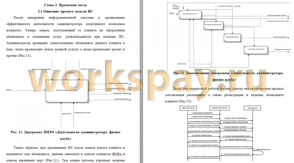 По результатам исследования предметной области была изучена организационная структура организации в целом, построены диаграммы и схемы, описывающие работу физкультурно-оздоровительного комплекса и сотрудника-администратора, в частности.