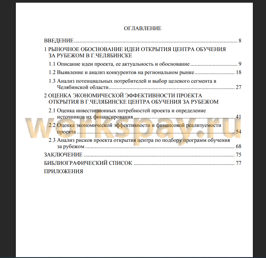 Целью выпускной квалификационной работы является оценка экономической эффективности проекта открытия центра по предоставлению услуг в сфере подбора образовательных программ обучения за рубежом «WorldStudy».