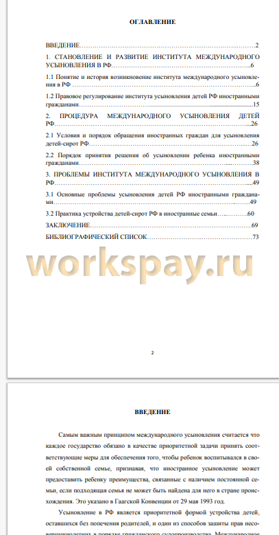 Объектом дипломной работы является институт международного усыновления в РФ.