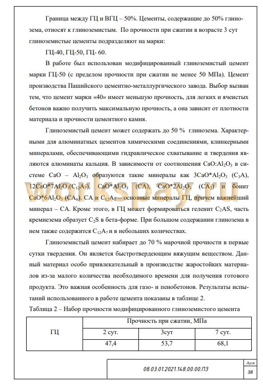 Тема: Модифицированный глиноземистый цемент и жаростойкий газобетон на его основе