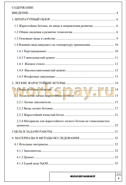 1.1 Жаростойкие бетоны, их виды и направления развития 6