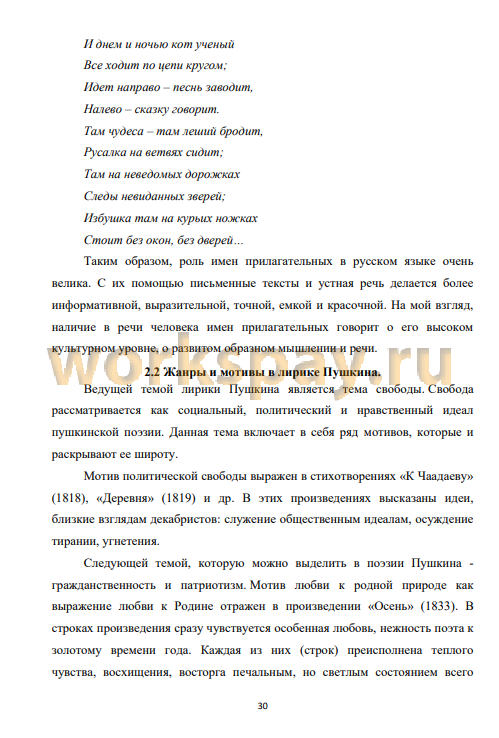 2.2 Жанры и мотивы в лирике Пушкина 30