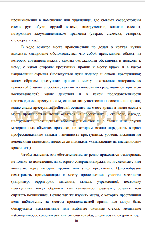 Целью работы является изучение, анализ и выявление особенностей кражи как формы хищения, рассмотрение методов расследования краж на основе научной литературы, нормативных источников и