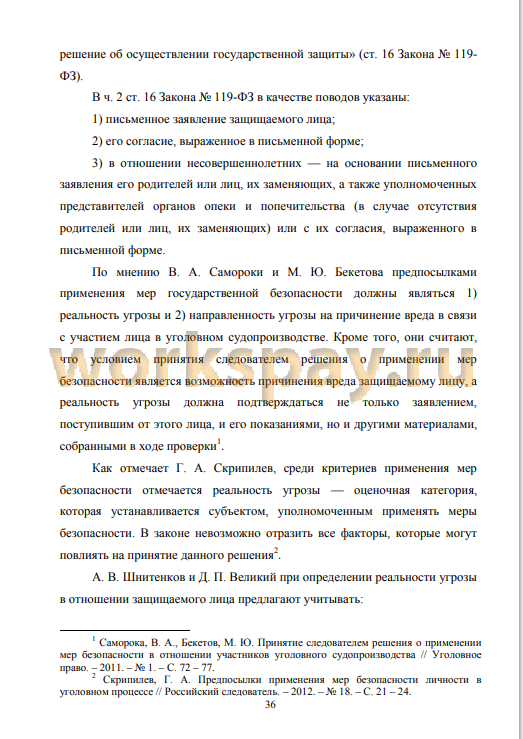 Адекватными средствами воздействия со стороны государства на рост преступности среди прочих является установление необходимых гарантий получения доказательств, раскрытия и расследования преступлений, привлечения к уголовной ответственности виновных лиц и обеспечение при этом прав и законных интересов всех участников уголовного судопроизводства. Одним из таких средств служит система мер государственной защиты и обеспечения уголовно-процессуальной безопасности участников, содействующих уголовному судопроизводству. Одним средств служит система мер государственной защиты и обеспечения уголовно-процессуальной безопасности участников, содействующих уголовному судопроизводству. С момента принятия в 2004 г. Федерального закона № 119 — ФЗ «О государственной защите потерпевших, свидетелей и иных участников уголовного судопроизводства» прошло достаточное время для научного осмысления накопившихся проблем.