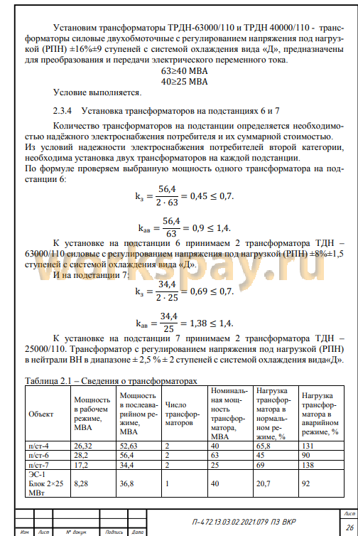 2.3 Выбор количества и мощности трансформаторов 25