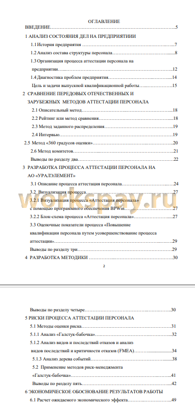 В выпускной квалификационной работе проведен обзорный анализ процесса «Аттестации персонала» на предприятии АО «Уралэлемент», в ходе которого выявлено фактическое существование процесса, но не имеется системы показателей, корректирующих и предупреждающих действий, не проводится постоянное улучшение процесса. В результате процесс не эффективен, непроизводителен, выполняется недостаточно профессионально из-за отсутствия его описания.