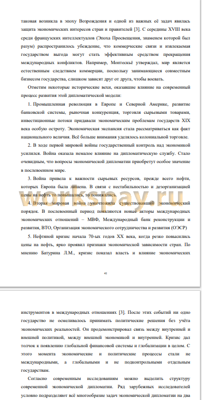 Целью выпускной квалификационной работы является - рассмотрение, анализ, роли и значения традиционной дипломатии в современных международных отношениях, а также насколько она устарела или нет, и какие субъекты могут заменить традиционную, переговорную дипломатию. Примерами могу служить акторы, которые характерны в рамках экономической дипломатии: торговые представительства, в чьи задачи входит представления внешнеэкономических интересов государства за рубежом. Кроме того, примером могут быть и новые типы акторов, действующих в рамках экономической дипломатии - неправительственные организации промышленные и торговые объединения.