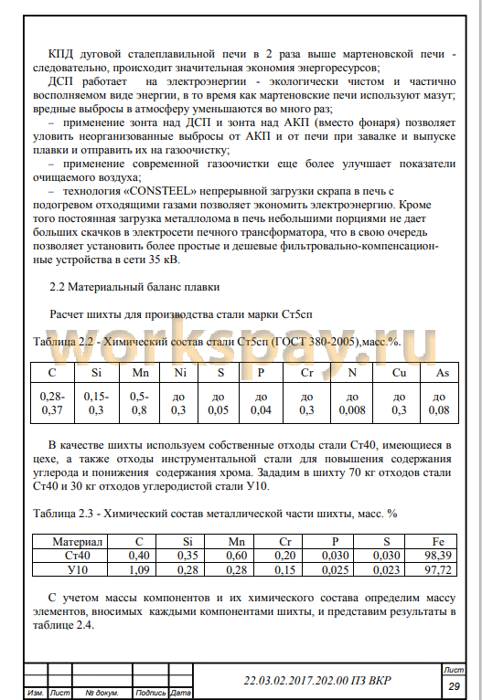 - выбор и описание новой предлагаемой технологической цепочки, начиная с выплавки и заканчивая разливкой стали.