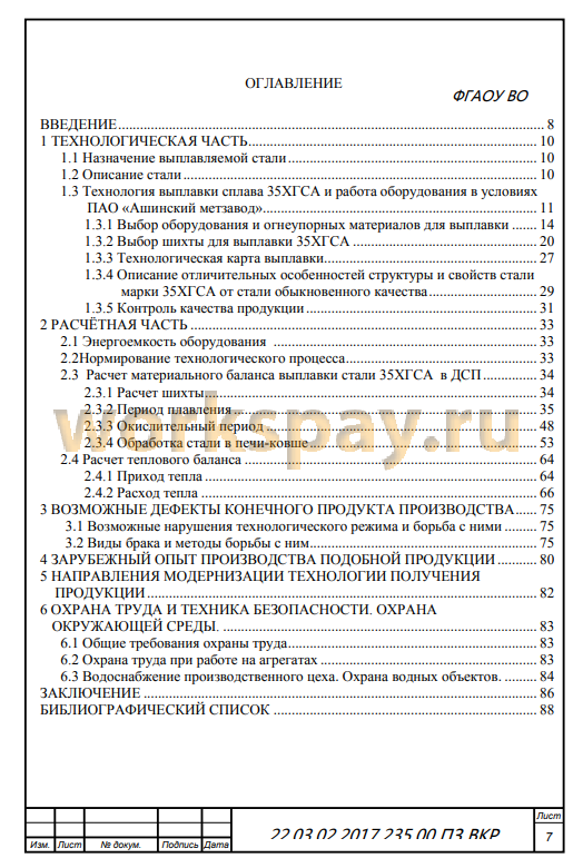 В данном дипломном проекте авторами изучен химический состав и рассмотрены отличительные особенности структуры и свойств стали 35ХГСА от сталей обыкновенного качества а также проведён анализ технологии выплавки стали. Разработана технология выплавки данной марки стали по схеме ДСП^ сталеразливочный ковш ^ ковш - печь ^ МНЛЗ. Произведён расчёт материального и энергетического баланса плавки.