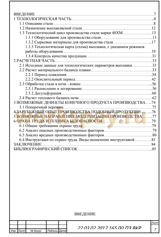 Цель выпускной квалификационной работы - изучить технологические особенности производства сталей, содержащих молибден, на примере производства 40ХМ.