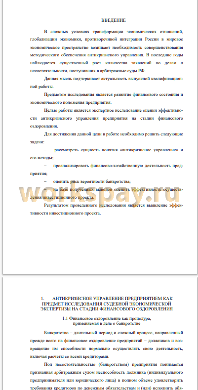 Целью работы является экспертное исследование оценки эффективности антикризисного управления предприятия на стадии финансового оздоровления.