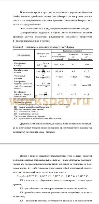 - оценить риск вероятности банкротства;