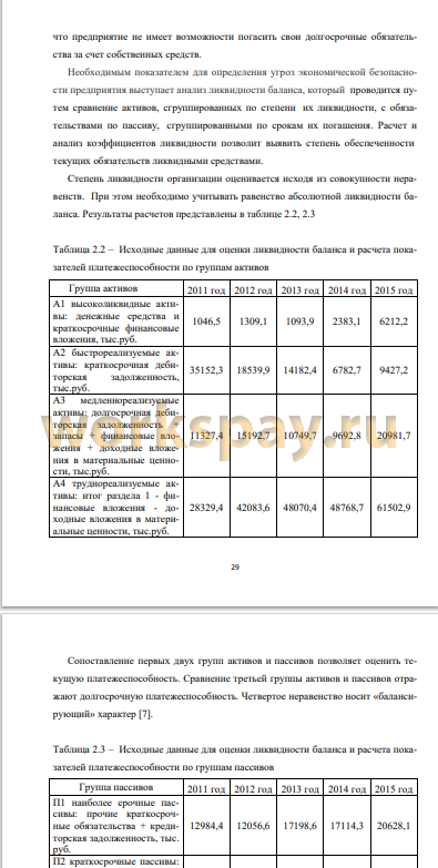 Коэффициент абсолютной ликвидности показывает, что часть краткосрочных обязательств не может быть погашена за счет имеющейся денежной наличности; коэффициент критической ликвидности соответствует нормативному значению только в 2011 году, однако, этого не достаточно, так как большую долю ликвидных средств составляет дебиторская задолженность, часть которой трудно своевременно взыскать; коэффициент текущей ликвидности ниже нормативного значения за весь период, что указывает на превышение краткосрочных финансовых обязательств над оборотными активами, которые обеспечивают резервный запас для компенсации убытков, что является одной из основных угроз экономической безопасности и обеспечивает предприятие наличием высокой долговой нагрузки.