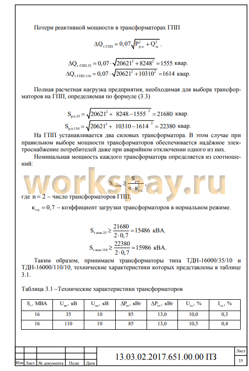 3 ВЫБОР НАПРЯЖЕНИЯ И ТРАНСФОРМАТОРОВ ГПП