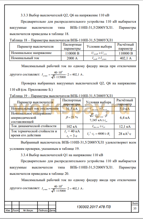3.3.4 Выбор выключателей Q1 на напряжение 110кВ 35