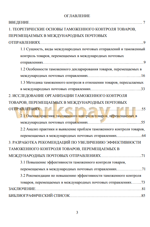 Предмет дипломного проекта - таможенный контроль товаров, перемещаемых в международных почтовых отправлениях.