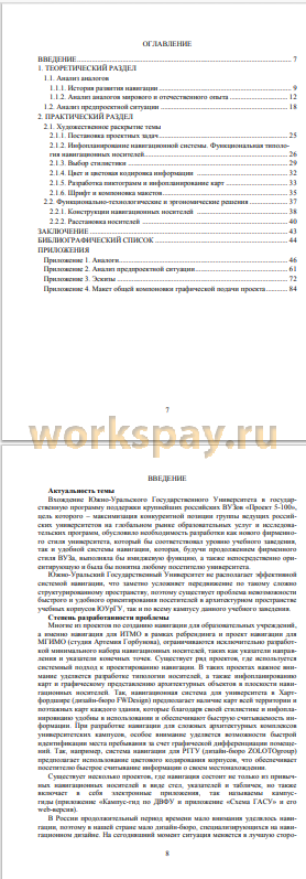 Разработан дизайн-проект графической системы навигации Южно-Уральского Государственного Университета, отражающий современные тенденции в коммуникативном дизайне, соответствующий бренду и позиционированию университета на рынке образовательных услуг, а также специфическим особенностям архитектурной среды территории. Исходя из проведенного индивидуального логистического анализа территорий разработана типология навигационных носителей, соответствующая сложности архитектурной планировке зданий.