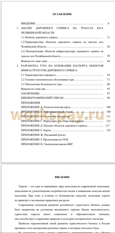 Предмет выпускной квалификационной работы - инфраструктура объектов дорожного сервиса как основа проектирования тура.