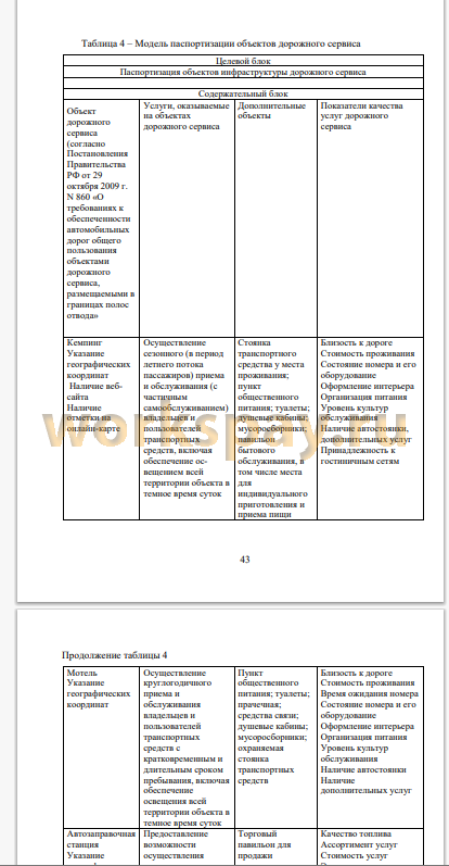 Было проведено исследование инфраструктуры объектов дорожного сервиса с целью изучения их количества и объема предоставляемых услуг, разработаны опросные формуляры, на их основе заполнены паспорта объектов , представленные в виде таблицы, с указанием географических координат.