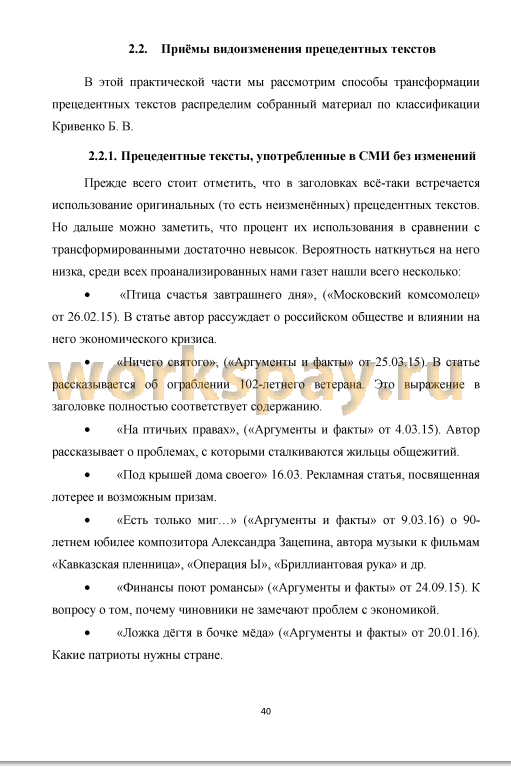 2.2.1. Прецедентные тексты, употребленные в СМИ без изменений 40